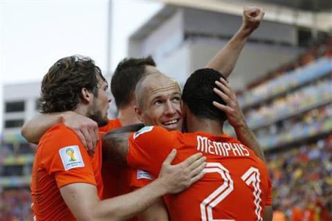 Hà Lan là đội gây ấn tượng mạnh nhất tại vòng bảng với lối chơi tấn công bùng nổ. Chỉ sau 3 trận, các chân sút áo cam đã ghi tới 10 bàn thắng để trở thành đội bóng có hàng công mạnh nhất World Cup 2014 tính đến thời điểm này. Hình ảnh Arjen Robben bứt tốc, loại toàn bộ hàng thủ Tây Ban Nha trước khi ghi bàn hay cú đánh đầu kinh điển của Van Persie vào lưới Iker Casillas được xem là những khoảnh khắc ấn tượng nhất tại vòng bảng.