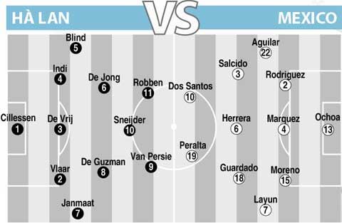 Ở phía đối diện, Mexico không quá nổi bật như Hà Lan tại vòng bảng. Thế nhưng, những gì mà đội bóng Bắc Mỹ thể hiện cho thấy họ là một tập thể rất đáng gờm. Qua 3 trận đấu, Mexico chỉ để thủng lưới 1 lần và bàn thua đó đến trong thời điểm họ đã dẫn Croatia tới 3-0. Trước đó, chiến thắng thuyết phục 1-0 trước Cameroon và đặc biệt là trận hòa 0-0 xứng đáng trước chủ nhà Brazil cho thấy Mexico là đội bóng được tổ chức rất chặt chẽ và khó bị đánh bại.