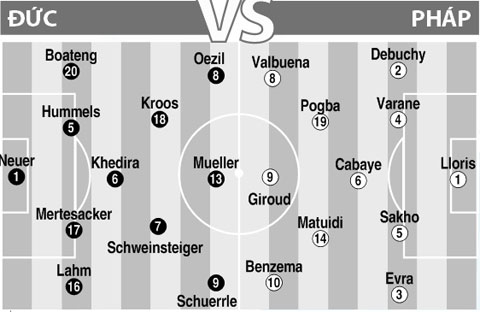Trận này, nhiều khả năng HLV Joachim Loew sẽ có một số thay đổi trong đội hình. Philipp Lahm sẽ được kéo về vị trí hậu vệ phải quen thuộc để tăng cường sức tấn công biên, trong khi Jerome Boateng được đẩy sang trái thay Benedikt Hoewedes. Ở tuyến trên, Mario Goetze sau trận đấu thất vọng trước Algeria nhiều khả năng sẽ phải nhường chỗ cho Andre Schuerrle.