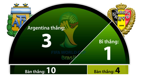 + Argentina và Bỉ là 2/4 đội toàn thắng ở World Cup 2014, tính cả 2 hiệp phụ, bên cạnh Hà Lan và Colombia.