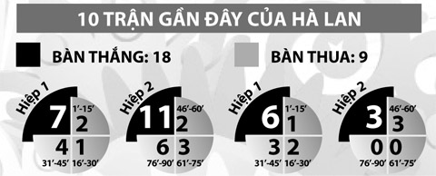+3/4 trận của ĐT Hà Lan tại World Cup lần này kết thúc với từ 3 bàn trở lên. Trái ngược, 3/4 trận của Costa Rica có dưới 2 bàn thắng cả trận.