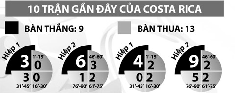 Thêm vào đó, trong hành trình đã qua, thực tế Costa Rica chưa phải đụng độ hàng công nào thực sự sắc bén. Uruguay không có Suarez, Italia thiếu đi sự chỉnh chu của Balotelli, ĐT Anh thì khỏi bàn (họ ra sân với đội hình dự bị). Thiếu đi những trải nghiệm thực tế, sẽ rất khó cho Costa Rica khi phải đối đầu “song sát” Robben - Van Persie.